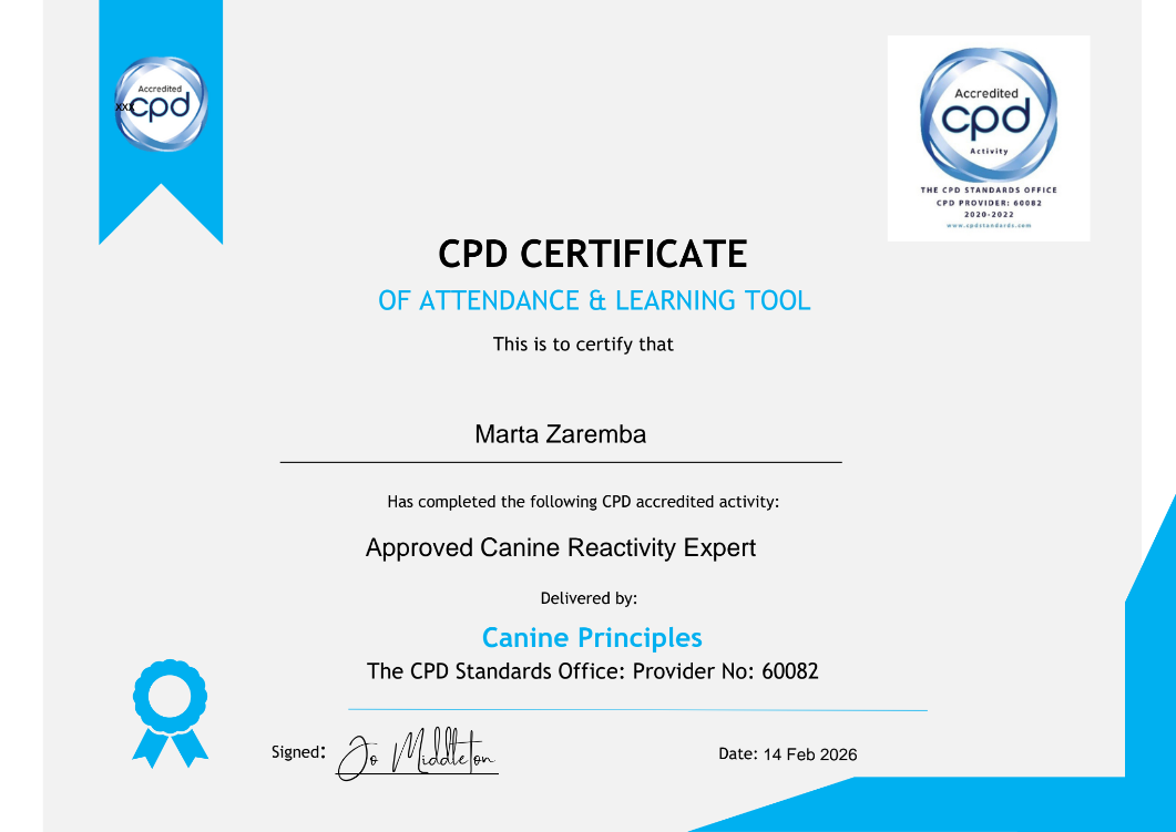 I am a qualified with Institute of Modern Dog Trainers and Dog Training College. My qualifications are all in positive reinforcement and kind dog training. I do not use aversive tools, coercion, punishment or pain in my training and my qualifications reflect that. Please have a look at my certificates. I welcome all questions about my qualifications so you are sure you are choosing a well qualified professional.